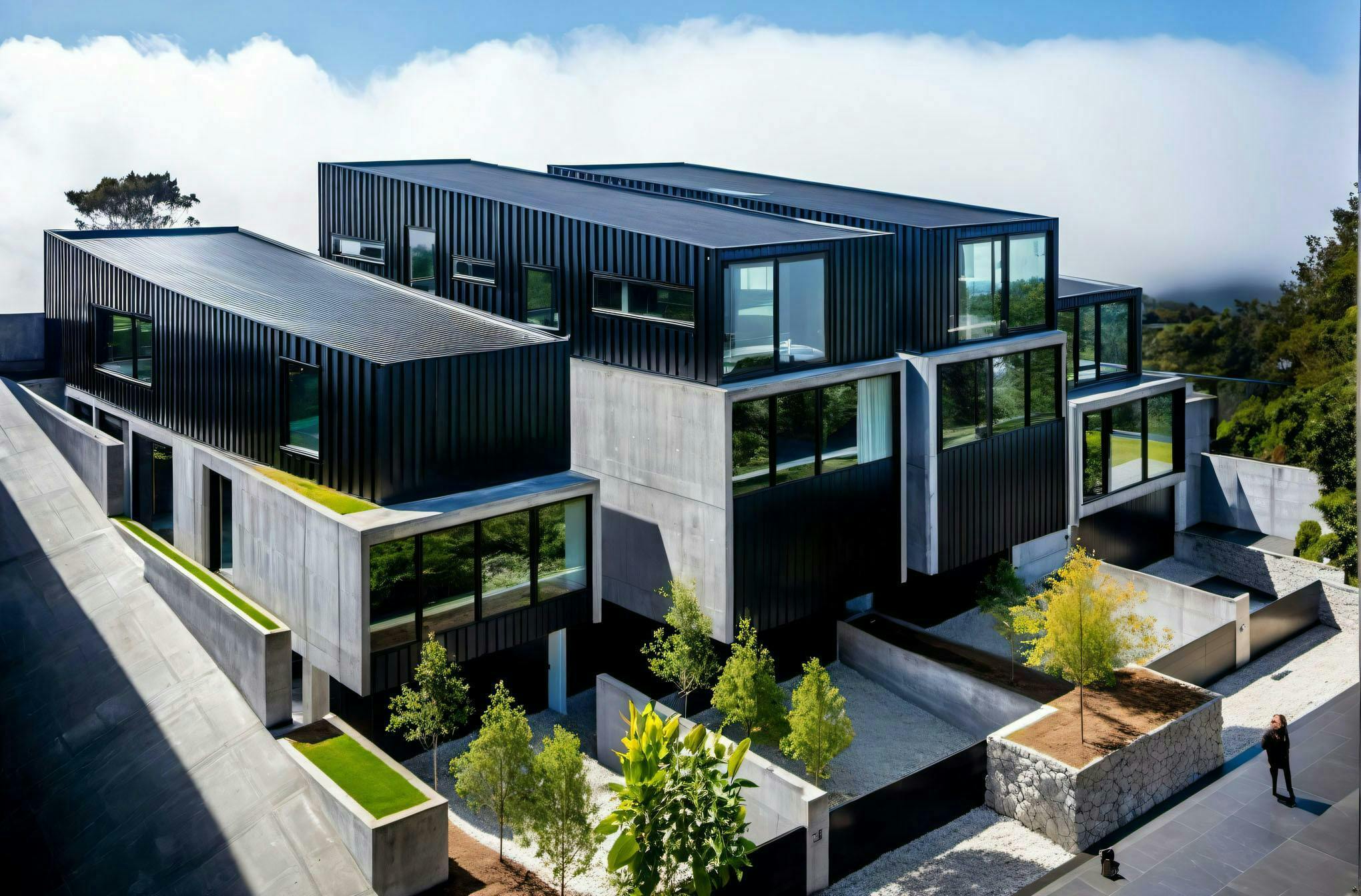 Situated in a prime location along Auckland’s waterfront, this development took an existing single unit site overlooking Hobson Bay and developed a design for four stand-alone houses. Each house has a spacious open plan living, dining and kitchen area that opens directly onto the rear yard. Large floor to ceiling windows allow for sweeping views over Paritai Drive and out towards the central city.